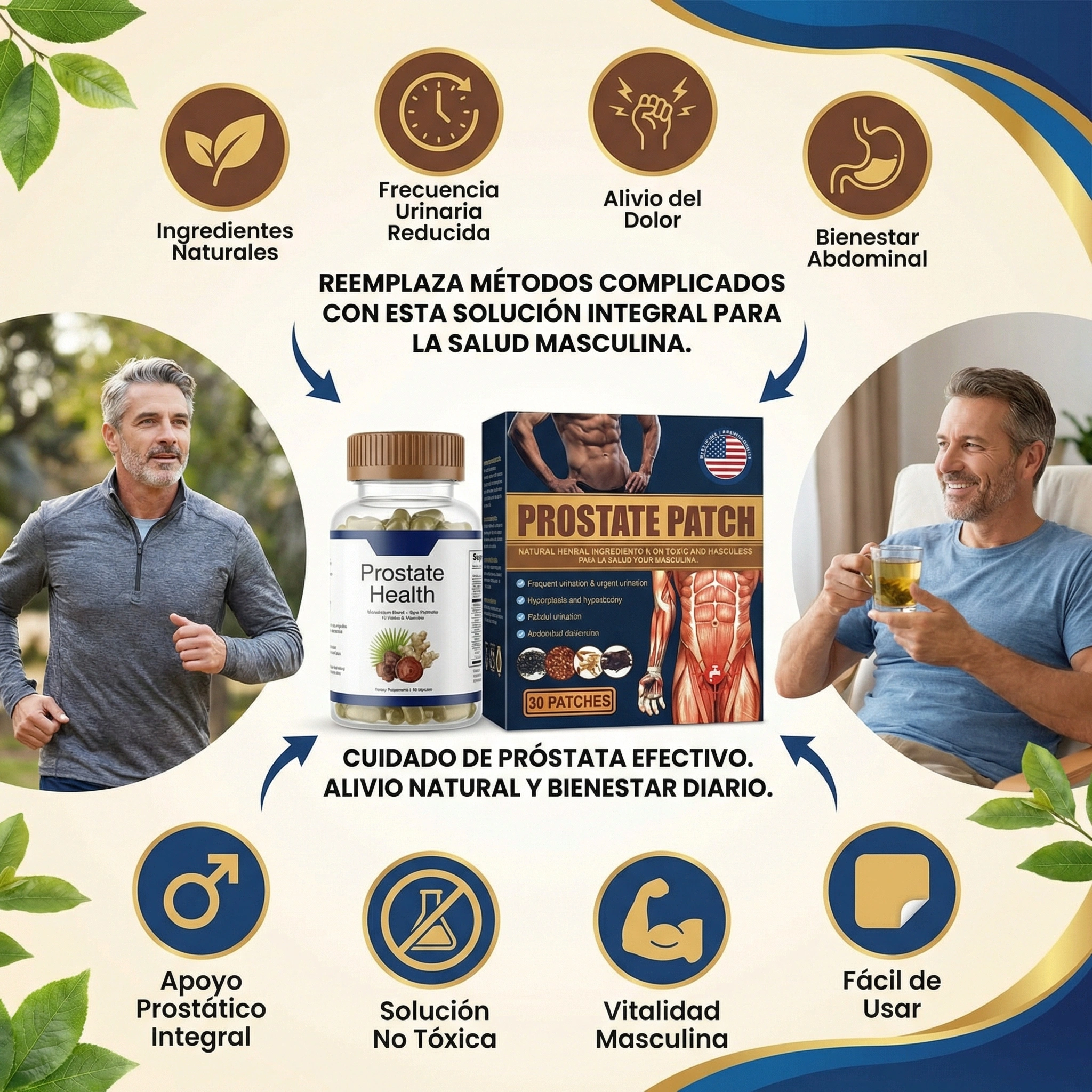 PACK PROSTACARE 30D (Alternativas: Dúo Próstata 30D / Pack Prostate Balance / Kit Bienestar Masculino) 2) Creativo listo (copy para imagen) TÍTULO GRANDE: 🔥 PACK PROSTACARE 30 DÍAS 🔥 SUBTÍTULO: ✅ Parche diario + suplemento en cápsulas 📦 Incluye: 30 Parches + 60 Cápsulas 3 BENEFICIOS (EN ICONOS): 💧 Confort urinario 🌙 Menos despertares nocturnos (apoyo) 🛡️ Bienestar masculino y rutina 30D SELLITOS (PEQUEÑOS): ⭐ “Pack completo” • “Fácil de seguir” • “Ideal para rutina” CTA ABAJO: 📩 Escríbenos “PROSTA” y te enviamos precio + delivery ⚠️ Suplemento. No es medicamento. Resultados varían. Si lo usarás en WhatsApp/IG, este texto queda brutal en un diseño fondo azul marino + dorado (premium). 3) Información del pack (qué es y para qué sirve) Este pack combina 2 formatos para una rutina completa: PROSTATE PATCH (30 parches): apoyo externo, 1 parche al día. PROSTATE HEALTH (60 cápsulas): suplemento para bienestar prostático. Enfoque del pack: acompañar hábitos (hidratación, menos alcohol/café de noche, menos picante, caminar) para apoyar el bienestar urinario y el confort masculino. 4) Características (lo que puedes vender fuerte) ✅ Rutina 30 días (fácil y ordenada) ✅ Doble formato: parche + cápsulas (más adherencia) ✅ Ideal para hombres +35 que quieren cuidarse ✅ Pack ahorro (más conveniente que por separado) ✅ Uso simple: parche diario + cápsulas según etiqueta